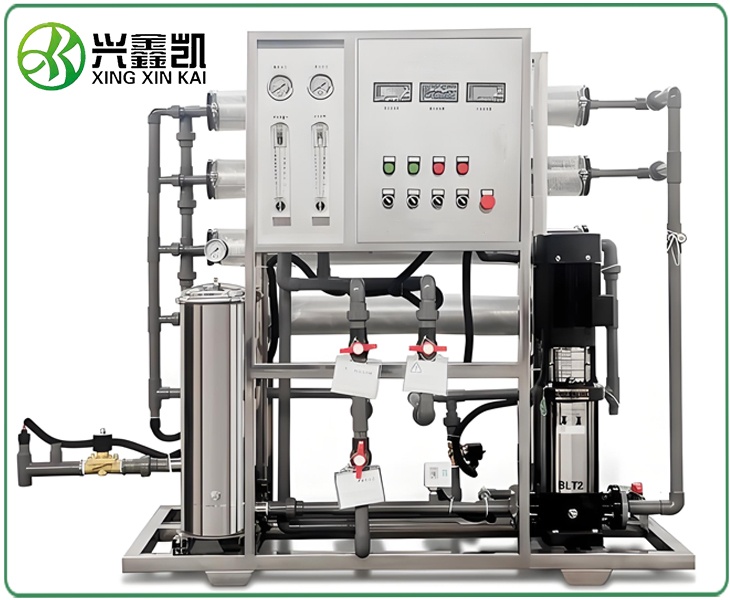 原水(自來水、地表水、地下水)經過預處理系統、過濾器,通過高壓泵將原水送至反滲透裝置直接產出產品水稱為單級反滲透。